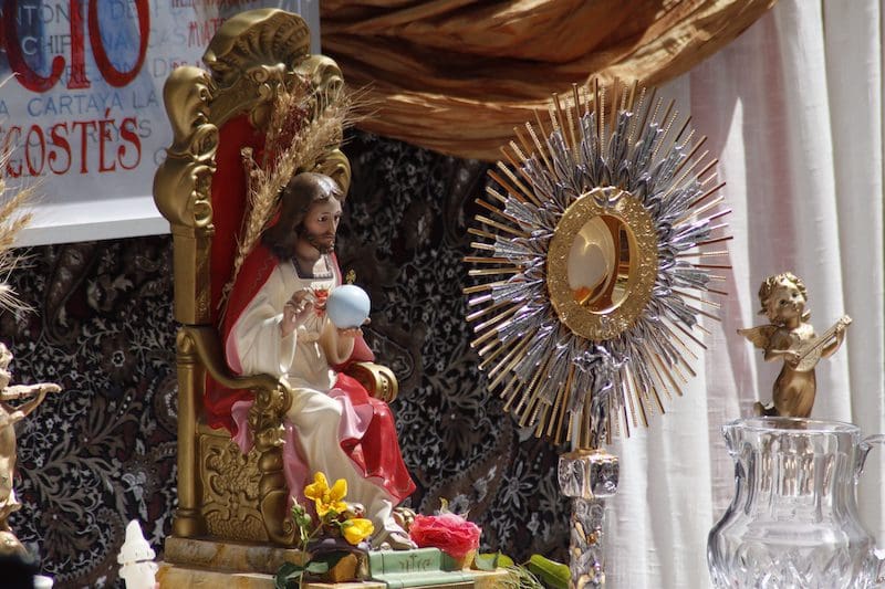 Esta fiesta tiene lugar 60 días después del domingo de Resurrección, o lo que es lo mismo, desde el segundo jueves tras Pentecostés. Es una celebración que sirve para ensalzar la Eucaristía y que reúne a millones de fieles. Además, es el Día de la Caridad, fecha clave para Cáritas Diocesana. En Majadahonda son 5 las parroquias que a través de esta organización perteneciente a la iglesia católica están ayudando a numerosas familias en situaciones de grave precariedad, casos que incluso Cruz Roja, recibiendo elevadas subvenciones estatales, o la propia Asistencia Social del Ayuntamiento no logran atender y remiten para ser socorridas por esta organización religiosa de limitados recursos, ya que su principal fuente de ingresos es la caridad de sus fieles. Este es un tema que en otra ocasión ampliaremos. Reportaje gráfico del Corpus Christi en Majadahonda: pinche sobre las imágenes para aumentar su tamaño (descarga gratuita):