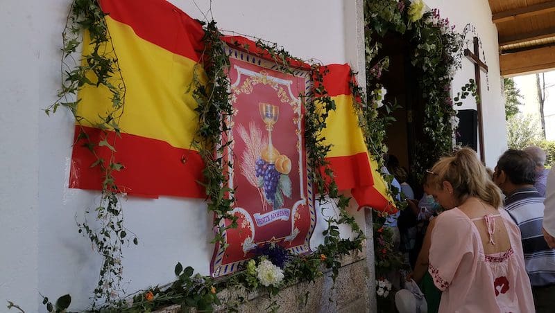 En cada altar se recibió de diferente manera a esta comitiva, que iba precedida por los niños que este año han realizado su primera comunión. En dos ocasiones sonó incluso la música, como en el altar donde se encontraba el diseñador majariego David de Calle y en el que estaban presentes algunos integrantes del Coro Rociero de Majadahonda. Fueron emotivos momentos en los que sus cánticos fueron acompañados por los feligreses que acompañaban la procesión. Con su entrada en la ermita finalizaba la procesión, al son del himno nacional, para seguidamente escuchar las palabras del párroco y recibir su bendición. Ante el Santísimo Cristo de los Remedios, el párroco realizó un ruego: “que nos ayude durante todo el año y hasta el próximo a caminar en la presencia de Dios, haciéndonos solidarios con los que más lo necesitan y ayudándonos a convivir en la unidad y en la concordia. Que seamos un testimonio de pueblo en medio de esta generación que nos toca vivir, que vivamos en la comunión y en la paz”.