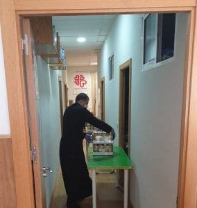 En esta ocasión además de la labor del padre Alfonso, de los voluntarios de Caritas, y jóvenes de la parroquia como Eric, hay que destacar la colaboración en el transporte de dicho material, así como su carga y descarga, realizada por Mudanzas Agustín. También mencionar la colaboración inesperada de una patrulla de la Policía Municipal que transitaba en esos momentos por el lugar. Y la colaboración de los miembros de Protección Civil, que han ayudado a realizar el reparto domiciliario de las mercancías. “Por sus obras los conoceréis”, dice el evangelio de San Mateo 7, 15-20). Y las 5 parroquias de Majadahonda continúan con su labor pastoral con motivo de la Semana Santa 2020 en época de cuarentena, de la cual damos cuenta a continuación: