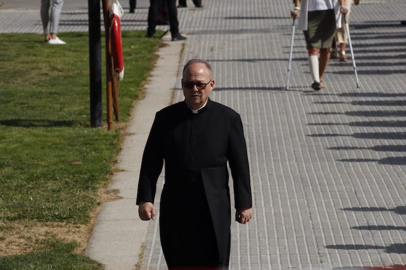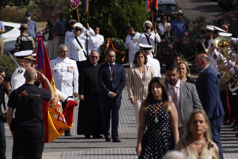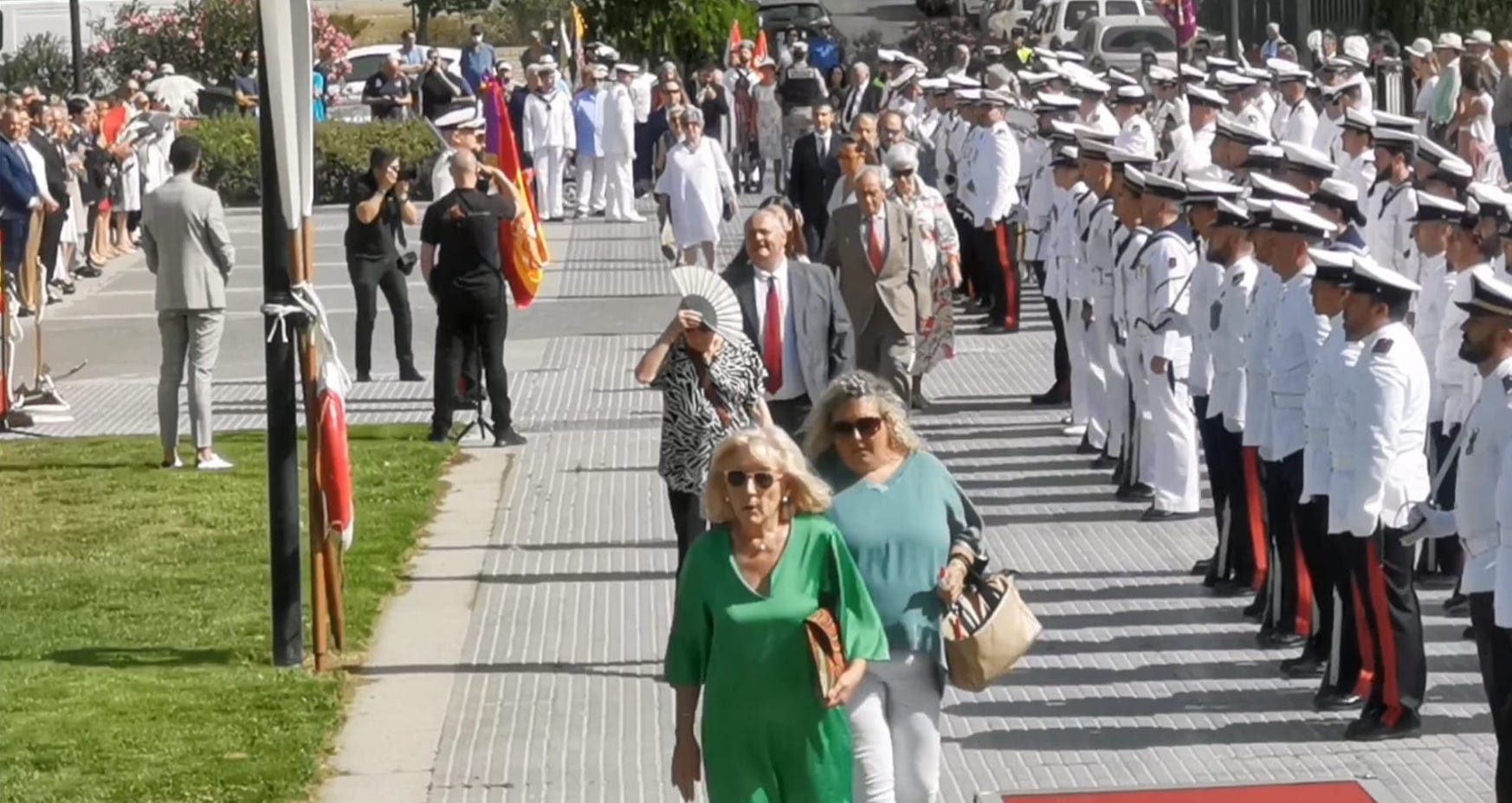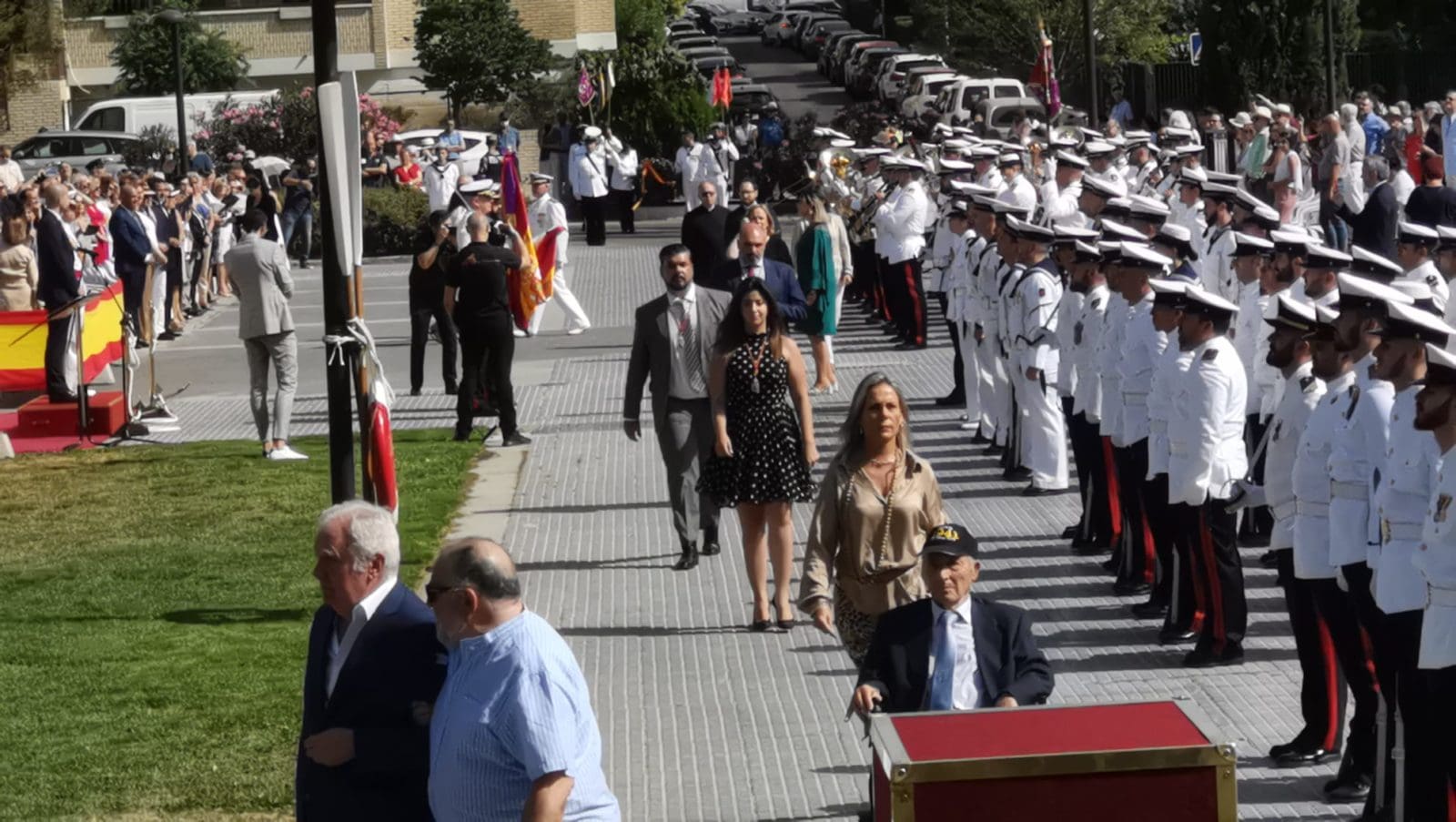 En el ámbito político destacó la presencia de concejales del PP junto con Paloma Adrados (PP), senadora y diputada regional de la Asamblea de Madrid, concejales de Ciudadanos y de Vox y dirigentes de «Vecinos por Majadahonda«. Destacó la ausencia del Partido Socialista en el acto, pues no acudió ninguno de sus concejales. Algunos de los políticos asistentes realizaron incluso, en último lugar y tras la sociedad civil, el acto de jurar bandera. Y ya que hablamos de presencias destacadas, no nos olvidamos del párroco de Santa Catalina y Arcipreste de Majadahonda, Juan Francisco Pérez Ruano, que por primera vez, y como manda el protocolo acorde a la solemnidad del momento -y ya lleva unos cuantos años en Majadahonda– vistió de sotana. El atuendo sorprendió al público asistente fuera del recinto, que no pudo evitar su sorpresa diciendo “¡Mira! ¡es Paco!”. Y es que este entrañable sacerdote siempre es y será nuestro «cura Paco”, incluso guardando el protocolo. La tribuna de autoridades también contó con la presencia del Jefe de la Policía Local y de altos mandos de la Guardia Civil. Finalizado el acto y bajo la gran carpa instalada en el Parque de Colón, se ofreció un refrigerio a los jurandos e invitados, que seguramente lo aceptaron con agrado, ya que la ola de calor era intensa en esos momentos. Por otro lado y en relación con la seguridad, el lugar contó con atención sanitaria. También se constató la presencia de la Policía Municipal y Guardia Civil, así como miembros de la Policía Naval vigilando los alrededores del recinto para evitar cualquier tipo de incidente, además de controlar el acceso al lugar.