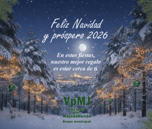 ANIVIDA: «Al finalizar este año, queremos hacer una pausa para agradecer todo lo vivido y compartido a lo largo de estos meses: proyectos, retos, aprendizajes y sueños construidos de manera conjunta. Ha sido un año de trabajo, de avances y de compromiso con las personas, las familias y los valores que dan sentido al Centro de Atención a Personas con Discapacidad Intelectual de Majadahonda. Miramos al nuevo año con ilusión y esperanza, confiando en que nos permita seguir creciendo, cumpliendo objetivos y mejorando la calidad de vida de las personas a las que acompañamos, siempre de la mano de sus familias y de todas las personas y entidades que nos apoyan. Os deseamos una Feliz Navidad y un 2025 lleno de salud, inclusión y nuevos proyectos compartidos. Recibid un cordial saludo». HOSPITAL UNIVERSITARIO GENERAL DE VILLALBA. Eva Sacristán Romero, Directora de Comunicación envía el siguiente mensaje: «Desde el Departamento de Comunicación del Hospital Universitario General de Villalba te deseamos una muy feliz Navidad y un 2026 lleno de buenas noticias, mucha salud y tiempo para disfrutarlo con los tuyos.nGracias por seguir haciéndote eco de nuestras novedades, que esperamos encuentres de interés y utilidad para el cuidado de tu salud y la de toda la población. ¡Un abrazo, y felices fiestas!». Y por último, el equipo de Prensa y Comunicación del Ayuntamiento de Majadahonda también nos desea unas Felices Fiestas con este propósito: «Aprovechamos la ocasión para agradeceros vuestro seguimiento y colaboración a lo largo de todo el año, que esperamos continúe en 2026. Un abrazo».