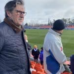 Abel Resino, entrenador y mítico portero del At. Madrid, en el Cerro viendo el Rayo Majadahonda contra el San Fernando