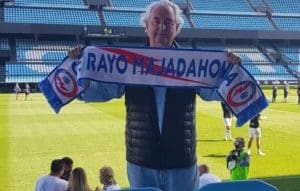 Carlos Bonet (Vecinos por Majadahonda) con un grupo de del Rayo Majadahonda en Balaídos