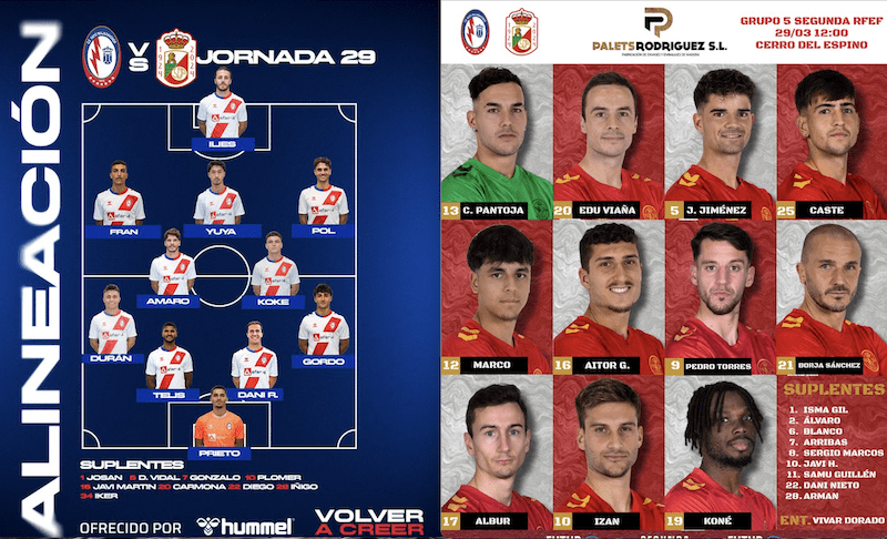 Rayo Majadahonda: Prieto (1), Duran (3), Telis (0), Dani Ramos (1), Gordo (1), Koke (1), Amaro (3), Yuya (2), Pol (2), Fran Pérez (2), Ilies (1). Sustituciones: Gonzalo (2), Dani Vidal (2), Iñigo (-), Javi Martín (3), Plomer (2). Entrenador: Guille Fernández (2). RSD Alcalá: Carlos Pantoja; Edu Viaña, Javi Jiménez, Caste, Marco (Álvaro 77’); Borja Sánchez (Javi Hernández 59’), Aitor González, Pedro Torres (Sergio Marcos 70’); Albur (Arribas 77’), Izan (Samu Guillén 59’), Koné. Goles: 0-1 (10’): Albur. 1-1 (85’): Javi Martín. 1-2 (90’): Caste. Árbitro: Javier Béjar Caballero (murciano). Amarilla a Yuya, Prieto, Plomer, Vidal; Borja Sánchez, Pedro Torres y Koné. Roja al local Telis (1’) y al visitante Caste (2, 90’). Asistencia: 1300 espectadores.