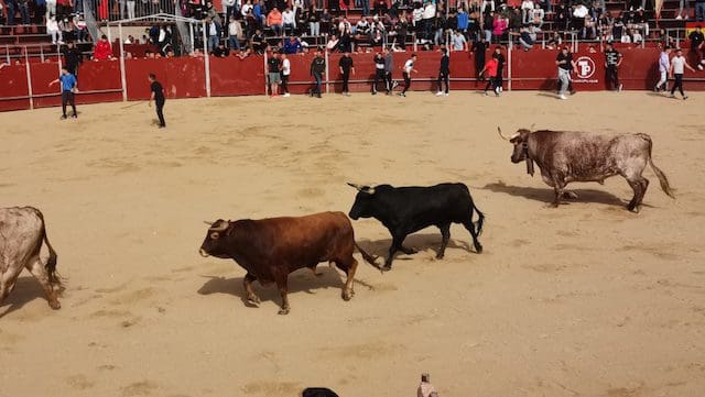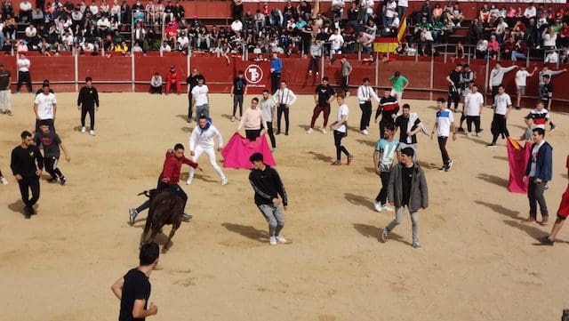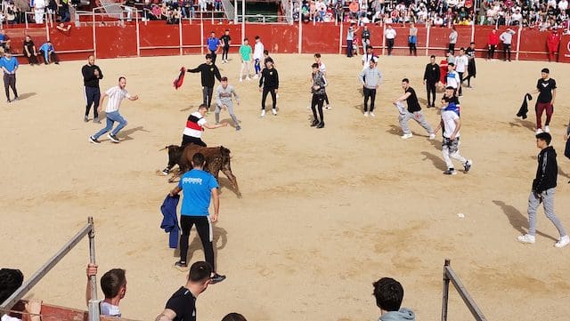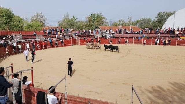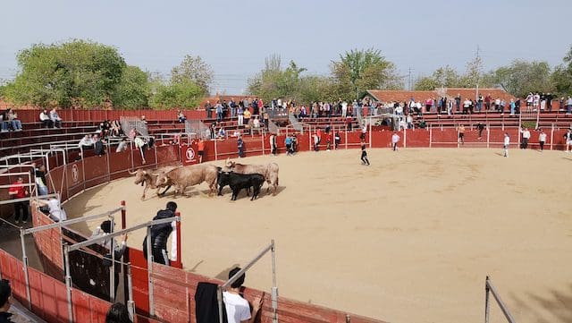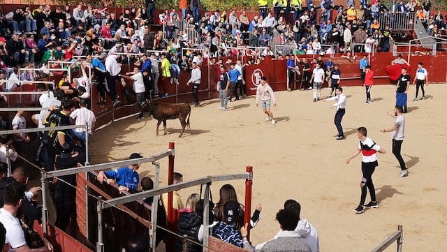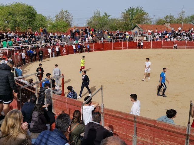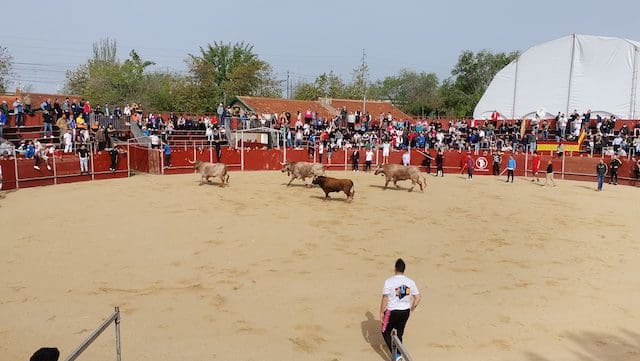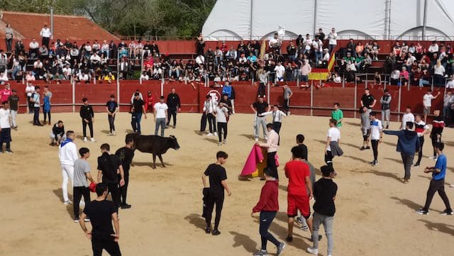 JULIA BACHILLER. La localidad de Las Matas, barrio perteneciente al vecino municipio de Las Rozas (Madrid), recupera sus fiestas en honor a su Patrón San José Obrero tras los dos años de pandemia.Desde el pasado domingo 24 de abril 2022 son numerosos los actos que han tenido lugar, entre ellos los festejos taurinos de este sábado 30 de abril que dieron comienzo con el encierro celebrado a las 10:00 horas. Este medio de comunicación estuvo presente, pudiendo comprobar una vez más, tras los celebrados en Villanueva del Pardillo y Valdemorillo, la gran acogida por parte de los vecinos y visitantes, tanto en el recorrido como en el interior de la plaza, lo que demuestra que la afición no se ha perdido. Gracias a alcaldes como el de esta ciudad, José de la Uz (PP), dentro de una variada oferta de actividades no se olvida el que le corresponde a la tauromaquia. El mismo primer edil reconocía que “¡había muchas ganas en el equipo de gobierno de volver a celebrar las fiestas de San José con nuestros vecinos de Las Matas!”. Y según se muestra en el cartel anunciador de los festejos taurinos, los precios de las localidades (IVA incluido) eran muy asequibles: entrada general festejo 1 €. Abono 3 festejos: 2 €.