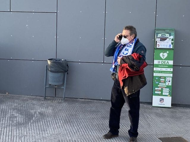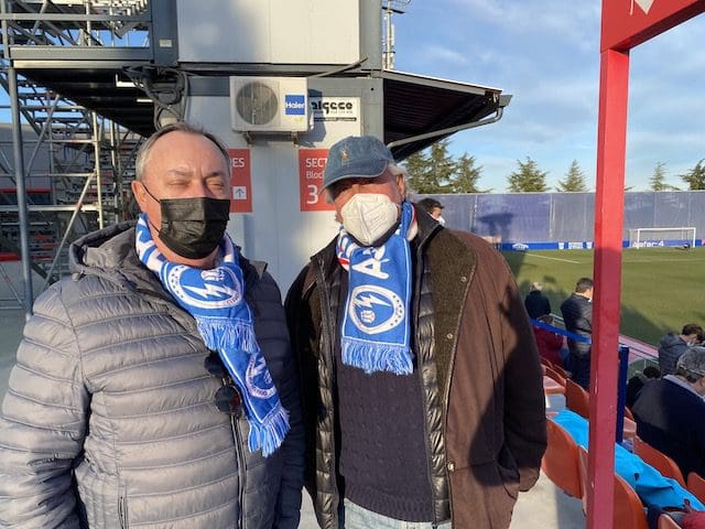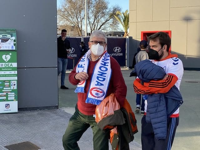 Zacarías Maíllo conversa con un amigo y detrás Lucio (As de Bastos), incondicionales del Rayo Majadahonda