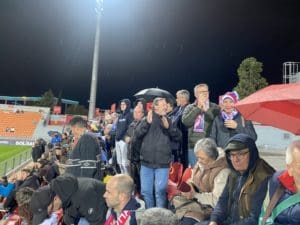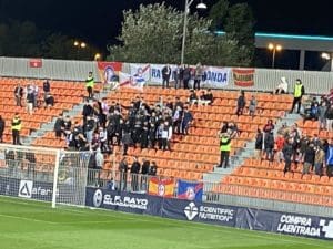 Unos 500 espectadores en encuentro nocturno con una grada de animación que ya ha llegado a los 80 integrantes y que coreó los nombres de uno de sus principales integrantes y de otra aficionada de la tribuna que los patrocina y anima. Habrá noticia con las fotos de los aficionados.