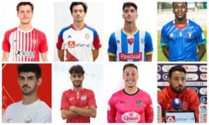 7 Fichajes del Rayo Majadahonda en junio (2024). De izquierda a derecha (arriba): Pablo Villalón, Rafa Salama, Ato y Cristian Ebea. Abajo: Kevin Manzano, Adrián Expósito, Adrián Fernández y el nuevo entrenador Jesús Arribas, que ya debutó en los últimos 3 partidos del final de liga 2023/24
