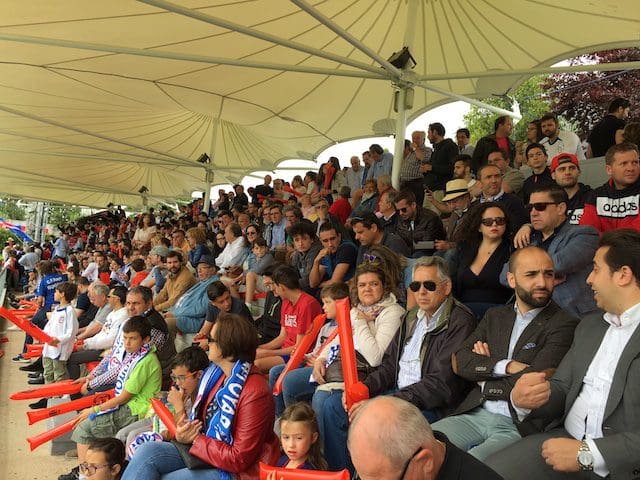 Desde Santander, el periodista Roberto González refleja en el diario AS este jueves 21 de abril que «la cuenta atrás de localidades disponibles en la zona reservada a los aficionados del equipo visitante está a punto de terminarse ante la masiva respuesta de los racinguistas. Sin contar a los que han podido comprar entradas en las otras dos tribunas, la taquilla virtual en la web del Rayo Majadahonda reflejaba a las 19:00 de hoy, a 48 horas del partido, la venta de 797 de las 883 existentes en la grada visitante. Teniendo en cuenta la habitual afluencia al templo majariego, no parece aventurado predecir mayoría racinguista en las gradas. Tal y como sucedió hace 5 años en el play off de ascenso a Segunda que les enfrentó», recordaba en su crónica. No obstante, en fuentes del club majariego precisaban que ya son 900 esas localidades «cántabras» y señalan que los 1.400 abonados, socios y accionistas del Rayo Majadahonda muy posiblemente van a equilibrar las fuerzas en la grada. Ese recuerdo del único antecedente de este duelo, el partido de «play off» disputado el 21 de mayo de 2017, del cual se cumplen 5 años, dejó entonces imágenes muy emotivas y las dos aficiones en la grada estuvieron muy igualadas en número, registrando un lleno apoteósico. El aforo del Cerro del Espino es no obstante de 3.300 entradas, por lo que si sumamos los abonos y las ventas (2.400) aún quedarían 900 entradas para los dos últimos días de taquilla.