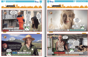 Las preferencias del PP de Majadahonda y su alcaldesa por el At. Madrid (llevaba al ex futbolista Adelardo en su lista electoral) en detrimento del Rayo Majadahonda también es motivo de sátira política