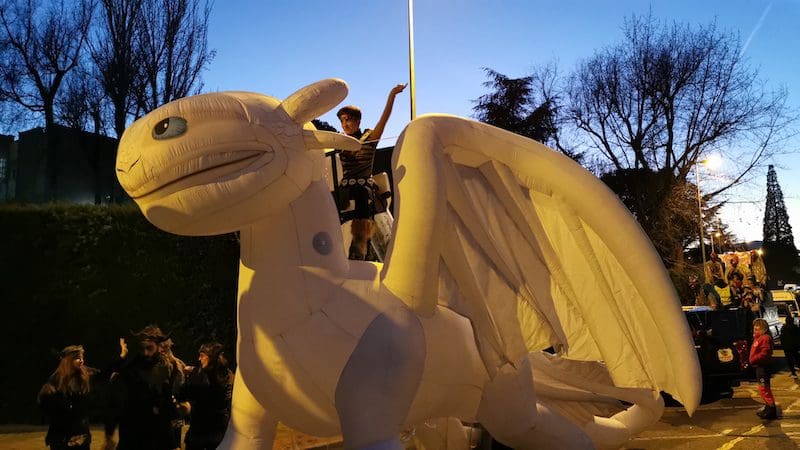 JULIA BACHILLER/JULIA MARUGÁN (Fotos y Vídeo). Majadahonda puso fin este jueves 5 de enero (2023) a los festejos navideños con la tradicional Cabalgata de Reyes. Tras las variadas emociones que despierta la Navidad y comenzar un nuevo año, llega el momento de la ilusión y los artífices de contagiarla a los adultos son los niños, algo que año tras año puede apreciarse en las calles de Majadahonda mientras por ellas transcurre la esperada Cabalgata. Este año contó con una gran afluencia de público desde el comienzo hasta el final, finalizando con el tradicional mensaje de sus Majestades los Reyes Magos de Oriente en el Parque de Colón. Abriendo el cortejo de esta Mágica Noche estuvo la Banda Municipal de Majadahonda y tras ellos la carroza de la Peña de la Albarda y su portal de Belén, como es costumbre. A continuación llegaba el turno de los pasacalles y carrozas infantiles, de las asociaciones deportivas, el Club de Mayores y los personajes a gran tamaño de la conocida película de animación “Como Entrenar a tu Dragón”, todos ellos acompañados de música y bailes para entretener a los asistentes.