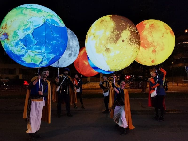 Entre todos ellos pudimos conocer a los integrantes de “Circografía”, que portaban coloridos globos de gran tamaño simulando a los planetas: eran dos jóvenes emprendedores, Guillermo y Eduardo, “que soñaban con hacer del circo y la animación de eventos su forma de vida” y con esfuerzo y duro trabajo lo van consiguiendo. La novedad en esta ocasión fue la presencia de tres dromedarios y un año más la gran ovación se la llevó el gran rebaño de ovejas procedente del Monte del Pilar. Según apunta el Consistorio, un total de 3.500 kilos de caramelos blandos sin gluten fueron repartidos durante el recorrido y lanzados 48.000 rollos de serpentina, pero lo que muchos ansiaban conseguir era uno de los numerosos muñecos de peluche que transportaba el autobús de dos plantas con el distintivo del Ayuntamiento de Majadahonda, los cuales causaron furor entre los asistentes, ya que es la primera vez que se efectúa un reparto similar. Pinche sobre las imágenes que se muestran a continuación para aumentar su tamaño: