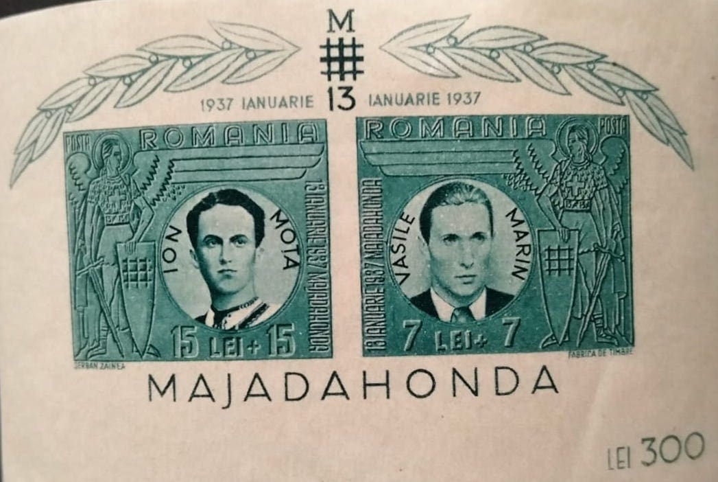 VICENTE ARAGUAS. (Majadahonda, 14 de octubre de 2025). Llegaron los sellos. Escribía hace unos días del lamentable estado actual de Correos, modélica institución en tiempos, que –otras historias aparte– ha puesto en mis manos, entrando bien entrados en octubre, un envío certificado que partió de Milagro (Navarra), sí, el pueblo del fenómeno llamado Cerdán, cerebro del clan de las chistorras, el 19 de setiembre. Ojo, en el seguimiento del envío he contado con la eficacísima y amable ayuda de Rosa, Olga y Guillermo, los tres de la oficina de la calle Oriente, frustrados todos ante un paquete detenido en Zaragoza, o tal decía el ordenador. El caso es que tal envío por fin llegó, con algo para para mí muy valioso, amo la Historia y la Filatelia y Majadahonda, protagonista involuntaria del avatar bélico impreso en la hoja “Rumania BF6”, dedicada a Marín y Mota, impresa en Bucarest el 13 de enero de 1941, en color verde azulado oscuro, y que nos muestra en fotograbado, con valor de 300 lei, y una tirada de 20.000 ejemplares, los sellos dedicados a Ion Mota y Vasile Marin, muertos como sabemos a la altura de lo que entonces era Radio Argentina. Ambos son protagonistas del controvertido cenotafio que cada 13 de enero convoca un cierto número de nostálgicos de lo que estos legionarios de la “Guardia de Hierro” representaban. Ellos y los otros 6 rumanos que con ellos vinieron y regresaron a Bucarest, luego del 13 de enero de 1937, portando los cadáveres de sus conmilitones, recibidos en la Rumania totalitaria en olor de multitud.
