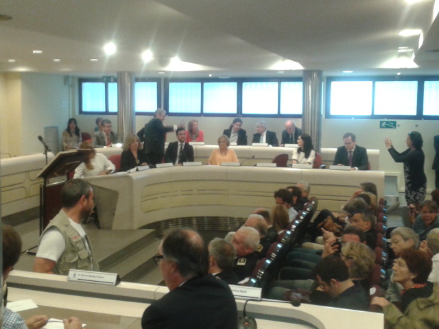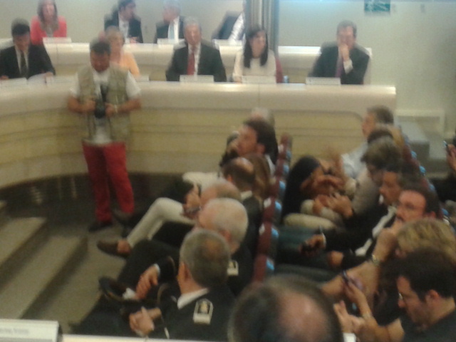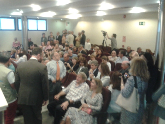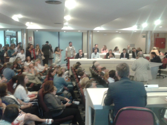 Suele darse una vez cada cuatro años y es precisamente en este día: la toma de posesión de los representantes electos en las urnas. Es lo que se conoce como la “fiesta de la democracia” porque el Ayuntamiento, el órgano institucional más cercano a los electores, se viste de largo y da comienzo a un nuevo mandato. La gente corriente, la calle, los vecin@s, los ciudadan@s… acuden al pleno para dejar constancia de su presencia y participar así en el acto. En la era de la tecnología doméstica y portátil, abarrotaron la sala consistorial y se saltaron la vetusta prohibición de no poder tomar fotografías ni vídeos. Aplaudieron, sonrieron, se felicitaron y estrecharon la mano de sus concejales y alcalde. Estas fueron las imágenes que MJD Magazin entresacó del público asistente al acto de toma de posesión de los 24 concejales y el alcalde del Ayuntamiento de Majadahonda que tuvo lugar este sábado 13 de junio: