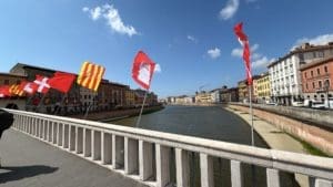 Pisa, bañada por el mismo río de Florencia, el Arno, por lo tanto, rivalizaba con la capital del ducado de Toscana, en riqueza y virtudes