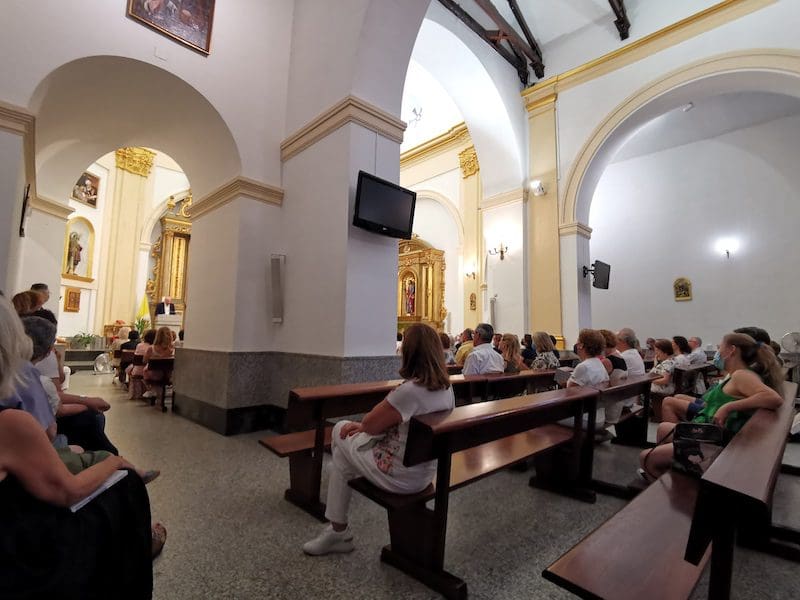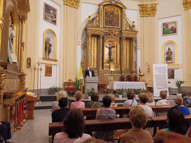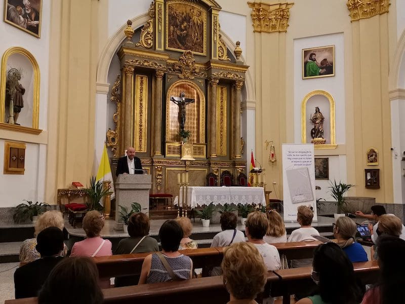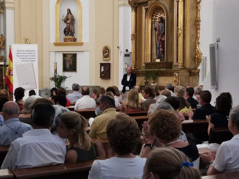 Antes de dar paso al autor, el párroco destacó el prólogo realizado por Alex Salas, de similar profesión que el autor, sacerdote y psicólogo. Y una recomendación: “Pararnos a reflexionar al finalizar cada capítulo”. Llegado el turno del escritor, Luis Murillo, este comenzó con los agradecimientos a los anteriores y a las cuatro personas que han aportado las experiencias anónimas que recoge el libro en sus últimas páginas. A María Montes, diseñadora de la acertada portada, porque ideó unas perchas cuyo significado se explica en el interior del libro. Tampoco olvidó su agradecimiento a dos personas muy implicadas en la colaboración parroquial, Camilo y Bibiana: ambos forman “Vicaptura”, que con sus fotografías y retransmisión de los actos más relevantes de esta parroquia hacen llegar el mensaje evangelizador de esta iglesia.