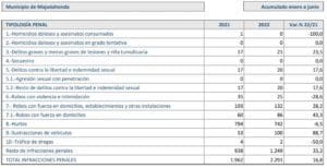 BÁRBARA DEL CAMPO. El Ministerio del Interior ha publicado este mes de septiembre (2022) el Balance de Criminalidad que corresponde al segundo trimestre del año y en él se recoge la evolución de la tasa criminal en Majadahonda, registrada durante los últimos doce meses por las Fuerzas y Cuerpos de Seguridad del Estado. El balance no puede ser más desolador: MAJADAHONDA: El aumento de las infracciones penales en 2022 es de 16,8% con respecto a 2021 ya que han aumentado los delitos pasando de ser 1.962 a 2.291. Los que más aumentan son los delitos graves y menos graves de lesiones y riña tumultuaria, que pasan de ser de 17 a 21, aumentando un 23,5%; los delitos contra la libertad e indemnidad sexual que pasan de ser 17 en 2021 a 20 en 2022, aumentando un 17,6%; los robos con fuerza en domicilios, establecimientos y otras instalaciones, que pasan de ser 103 en 2021 a 132 en 2022, aumentando un 28,2%, la sustracción de vehículos que pasa de ser 53 en 2021 a 100 en 2022 aumentando un 88,7%, y el resto de infracciones penales que aumenta un 33,2% pasando de ser 938 en 2021 a 1.249 en 2022.