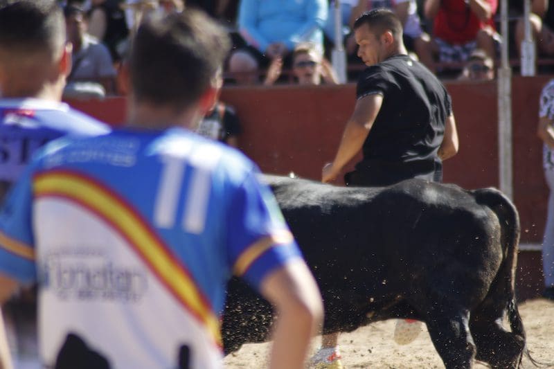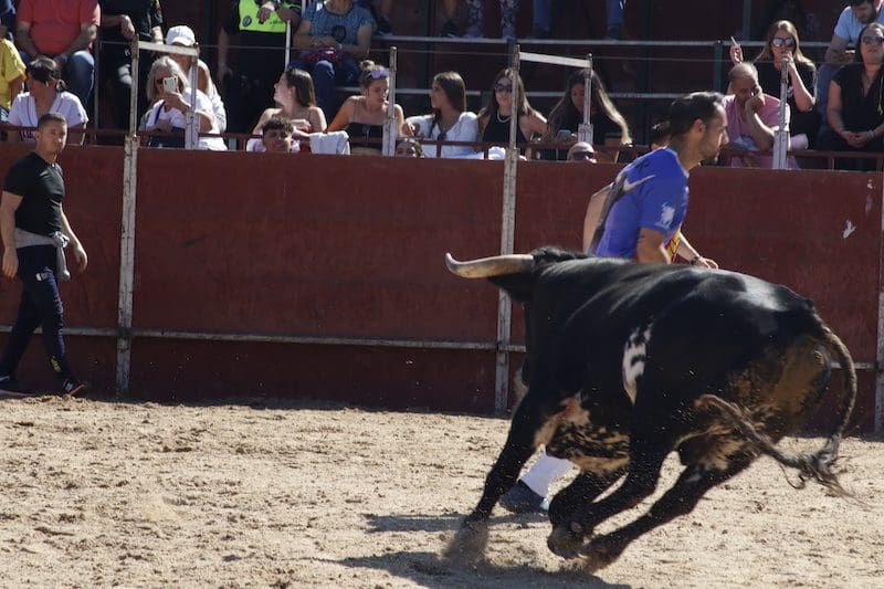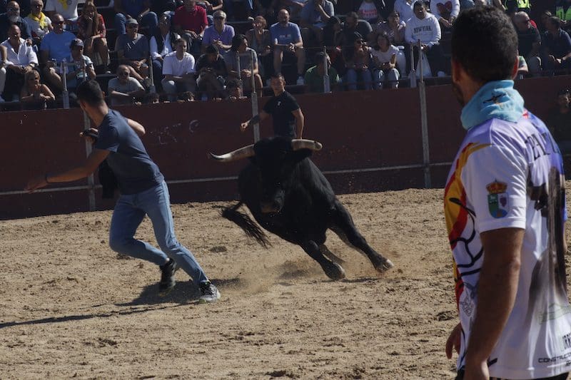 El segundo toro del encierro se negó a entrar en los toriles y el tercer y último toro ascendía en su recorrido hacia la plaza 1 hora y 10 minutos después, quedando las talanqueras desiertas de asistentes por la desesperante demora. Algunos optaron entonces por dirigirse a la plaza. Con la suelta de reses llegó el momento en el que los aficionados y los pastores, algunos de ellos conocidos recortadores majariegos, sorprendieron al público con su destreza y valentía ante los pitones. Lamentablemente el segundo de los astados se fracturó uno de sus cuernos a los pocos minutos de salir al ruedo al embestir fuertemente contra un burladero, motivo por el cual inmediatamente se le retiró a los corrales.