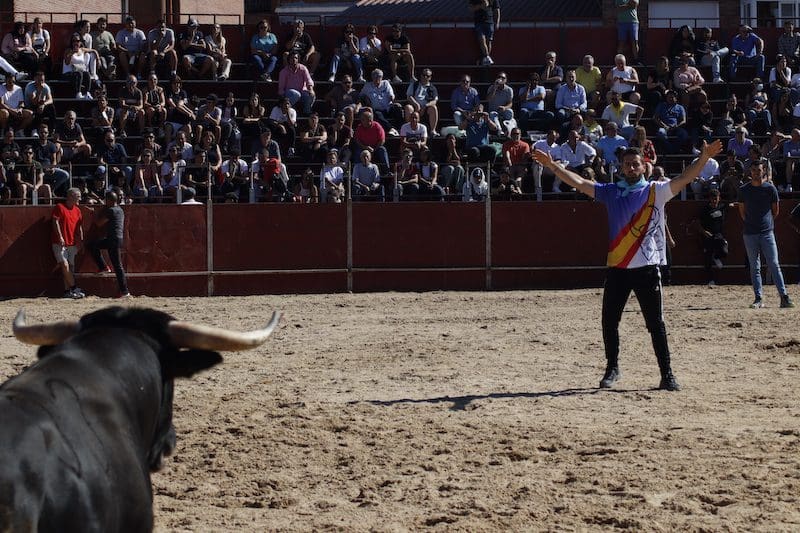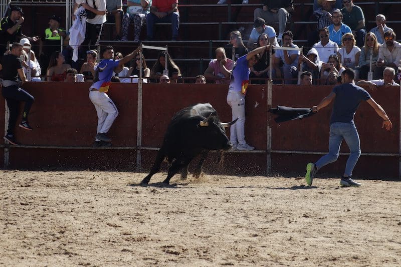 J. BACHILLER/ J. MARUGAN (Vídeo y Fotos). Los festejos taurinos programados con motivo de las Fiestas Patronales de Majadahonda comenzaban este viernes 16 de septiembre (2022) marcados por la incertidumbre de llegar a realizarse o no. Y es que nunca se había llegado al extremo de finalizar la instalación del coso taurino a elevadas horas de la noche del día anterior al primer encierro. Este se produjo en horario de mañana, por fortuna sin accidentes a destacar, pero con incidentes destacables. El primero de ellos se produjo cuando el concejal de Festejos, Eduardo González, prendió la mecha del primer cohete, tras el cual se soltaron los cabestros desde la plaza hasta el final del recorrido donde aguardaba el primer astado. Fue un grave error que incluso podría haber causado un lamentable accidente entre los corredores. El concejal de Festejos ignoraba el significado de los tres cohetes, y no uno, que siempre se lanzan al comienzo de este tipo de actos, algo que su compañero de partido y concejal, Manuel Troitiño, experto conocedor del arte de la tauromaquia, solía hacer en anteriores ediciones matutinas con todo rigor.