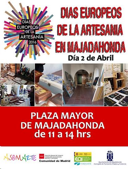 Majadahonda participa en los Días Europeos de la Artesanía 2016 con un mercadillo especial realizado por la Asociación de Artesanos y Artistas de Majadahonda. El lugar elegido para este mercado popular es la Plaza del Ayuntamiento, donde los visitantes y curiosos pueden contemplar y adquirir objetos de elaboración artesanal. Gran parte de los puestos pertenecen a productores locales de disciplinas diversas como la pintura, el «patchwork», la encuadernación, bisutería y otras muchas más. El mercadillo tiene lugar este sábado día 2 de 11:00 a 14:00 horas y cuenta con accesos para personas con movilidad reducida.