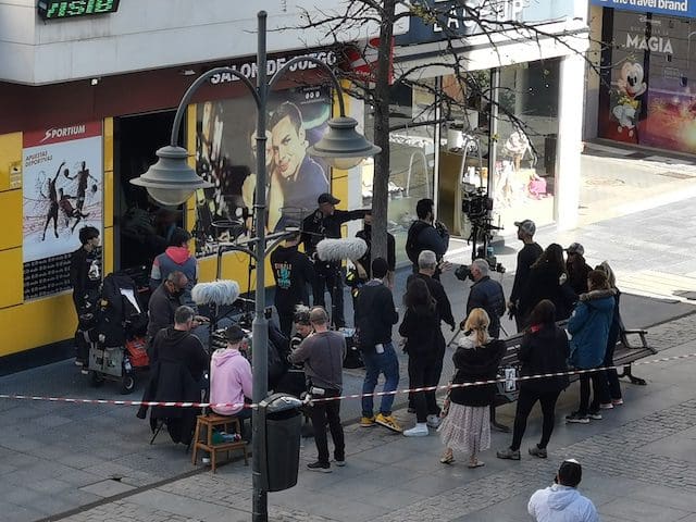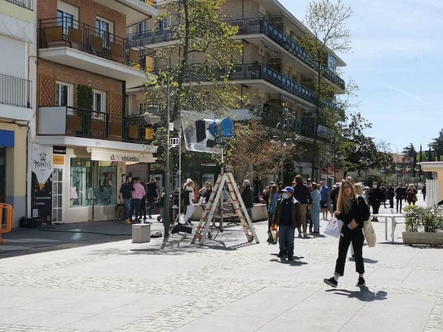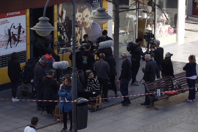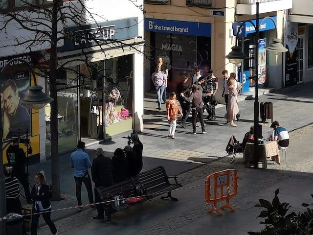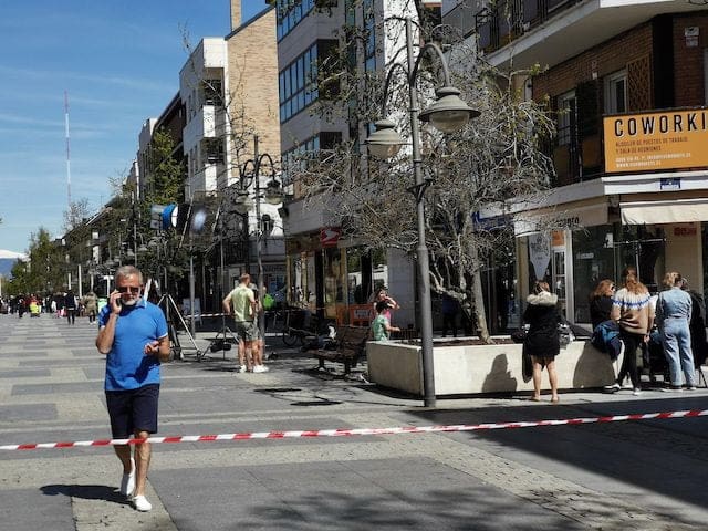 JULIA BACHILLER. Muchos de los vecinos que habitualmente transitan por la Gran Vía de Majadahonda se sorprendieron este jueves 7 de abril (2022) al encontrarse con un equipo de rodaje que durante parte de la mañana y la tarde estuvo grabando en un tramo de la calle central del municipio. En un primer momento lo hicieron en el interior y exterior de la conocida tienda de moda infantil “El Encanto”, para más tarde continuar el rodaje en la plazoleta frente a la “Ferretería la Majariega”, efectuando las ultimas tomas en la calle Escudero. Uno de los integrantes del equipo de grabación desveló a MJD Magazin que las imágenes grabadas formarán parte de la nueva serie “Escándalo” que se estrenará el próximo año 2023.