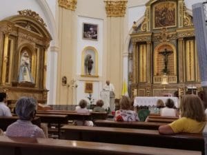JULIA BACHILLER. El Ayuntamiento de Majadahonda, a través de la Concejalía de Mayores dirigida por la concejal María José Montón (PP) rindió un homenaje a los “abuelos” majariegos este martes 26 de julio (2022) con motivo de la celebración del “Día de los Abuelos”. Los actos comenzaron con una eucaristía a las 10:00 horas en la Parroquia de Santa Catalina Mártir, celebrada en esta ocasión por el sacerdote Luis Murillo. En su emotiva homilía, el padre Luis comenzó recordando a San Joaquín y Santa Ana, abuelos de Jesús, motivo por el cual se eligió este día para rendir homenaje a los mayores de la familia. Seguidamente ensalzó la figura de los abuelos y el importante papel que tienen en nuestra sociedad, tomando como referencia las palabras del Papa Francisco, quien recientemente dijo: “Los abuelos son la flor madura de la sociedad”. Finalizó recordando que “España se ha forjado con muchas dificultades. Estos pueblos que forjaron esta España que es hoy se merecen lo mejor, porque lo han hecho a pie, han ido caminando, nos enseñan la parte artesanal de la vida, tuvieron que crear con sus manos”. Como broche final a la misa, el padre Luis pidió un aplauso para los abuelos, el cual sonó con enorme intensidad en el templo. Al acto asistieron concejales de PP, Cs y Vox, así como la presidenta del Club de Mayores Reina Sofía, Concepción Ruiz.