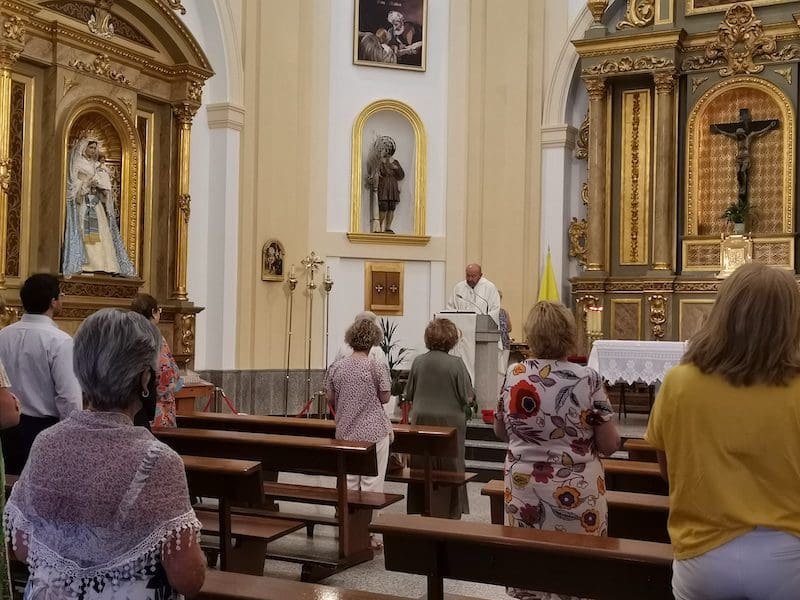 JULIA BACHILLER. El Ayuntamiento de Majadahonda, a través de la Concejalía de Mayores dirigida por la concejal María José Montón (PP) rindió un homenaje a los “abuelos” majariegos este martes 26 de julio (2022) con motivo de la celebración del “Día de los Abuelos”. Los actos comenzaron con una eucaristía a las 10:00 horas en la Parroquia de Santa Catalina Mártir, celebrada en esta ocasión por el sacerdote Luis Murillo. En su emotiva homilía, el padre Luis comenzó recordando a San Joaquín y Santa Ana, abuelos de Jesús, motivo por el cual se eligió este día para rendir homenaje a los mayores de la familia. Seguidamente ensalzó la figura de los abuelos y el importante papel que tienen en nuestra sociedad, tomando como referencia las palabras del Papa Francisco, quien recientemente dijo: “Los abuelos son la flor madura de la sociedad”. Finalizó recordando que “España se ha forjado con muchas dificultades. Estos pueblos que forjaron esta España que es hoy se merecen lo mejor, porque lo han hecho a pie, han ido caminando, nos enseñan la parte artesanal de la vida, tuvieron que crear con sus manos”. Como broche final a la misa, el padre Luis pidió un aplauso para los abuelos, el cual sonó con enorme intensidad en el templo. Al acto asistieron concejales de PP, Cs y Vox, así como la presidenta del Club de Mayores Reina Sofía, Concepción Ruiz.
