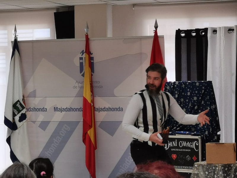 Tras la eucaristía, a las 11:30 horas la actividad se desplazaba al Centro de Mayores continuando con este homenaje de agradecimiento a los abuelos. Aquí estos pudieron disfrutar de un entretenido y divertido espectáculo de Magia “O’Magicadabra a cargo del mago Dani O’Magic. En ese momento efectuó su presencia el alcalde, José Luis Álvarez Ustarroz, el cual propició las bromas del mago al descubrir de quien se trataba. En esta ocasión niños y mayores pudieron presenciar una magistral demostración de magia cargada de humor y en la que la participación de los asistentes mantuvo el entretenimiento en todo momento. Los actos organizados con motivo de la celebración del día finalizaron a las 18:30 horas con la proyección de la película “En Guerra con mi abuelo” en los Cines Zoco Majadahonda.