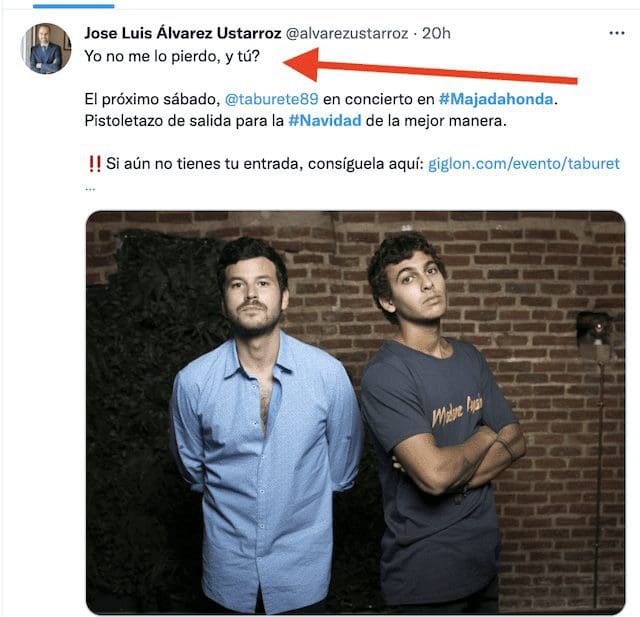 El alcalde responde así a las críticas por las entradas gratuitas para los concejales en el concierto de «Taburete» mientras el resto del público paga: «Yo no me lo pierdo ¿y tú?».