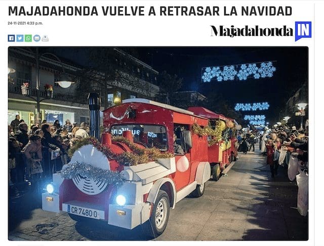 LIDIA GARCIA. Numerosos vecinos y comerciantes de Majadahonda están mostrando sus protestas, quejas y críticas al Ayuntamiento y al Círculo de Empresarios en foros y redes sociales por el retraso en el encendido de las luces navideñas que ya están funcionando en otros municipios limítrofes del Oeste de Madrid (Las Rozas, Pozuelo y Boadilla). También por la gestión del «trenecito navideño», que por una deficiente gestión de ambas instituciones, está provocando un «caos» por falta de entradas y de información al respecto. Además se está cuestionando la «opacidad» en cuando al gasto y financiación de las actividades navideñas, ya que a tenor de los comentarios suscitados, no queda claro cuanto paga el Ayuntamiento con dinero público y que paga el Círculo de Empresarios con las cuotas de sus socios. Y la pregunta no es ociosa: en la última reunión del Círculo de Empresarios celebrada el 11 de diciembre (2021) para organizar precisamente actividades para estas fiestas navideñas, solo asistieron 7 comerciantes y la presidenta, Blanca López-Beltrán, reveló que ya no existía directiva, ni vicepresidente, tesorero o vocales (no aparecían, han dimitido o se han ido). La gestión ya solo la dirige la gerente Diana Martínez Calvo, empresaria de Villanueva de la Cañada que cobra del Círculo y a veces del Ayuntamiento también por sus contratos privados, ya que la presidenta dijo que «carecía de tiempo» para asistir a las reuniones municipales. La vecina Estela Maeso, que lanzó un comentario que ha suscitado ya cerca del centenar de opiniones, formula «una pregunta ¿Quién paga el tren? ¿El Ayuntamiento o el pequeño comercio?». Del Ayuntamiento no respondió nadie pero lo hizo la gerente del Círculo de Empresarios, Diana Martínez Calvo, que aseguró que el «trenecito» lo pagan «los dos», Ayuntamiento y Círculo de Empresarios. No dio datos, cuentas o números y quizás por eso Estela Maeso no se conformó y respondió a otros que le preguntaban: «Si hay dinero público invertido.. ¿Puedes asegurarme que lo han pagado los comercios o es puro conformismo por tu parte? Lo digo porque es un matiz importante«. Esta vecina afirma que «no quedaban tickets» para el «trenecito», algo que confirman otros vecinos, y sugiere: «¿no sería mejor, potenciar al pequeño comercio con otras cosas, tipo encender el alumbrado navideño?. Si el tren lo paga el Ayuntamiento debería ser abierto, no montar una «Gimkana» para conseguir tickets. La cara del chico de la terraza en lo que nos hemos sentado era un poema hoy… Sinceramente, ya podían poner el alumbrado, que la gente pueda pasear tranquilamente».
