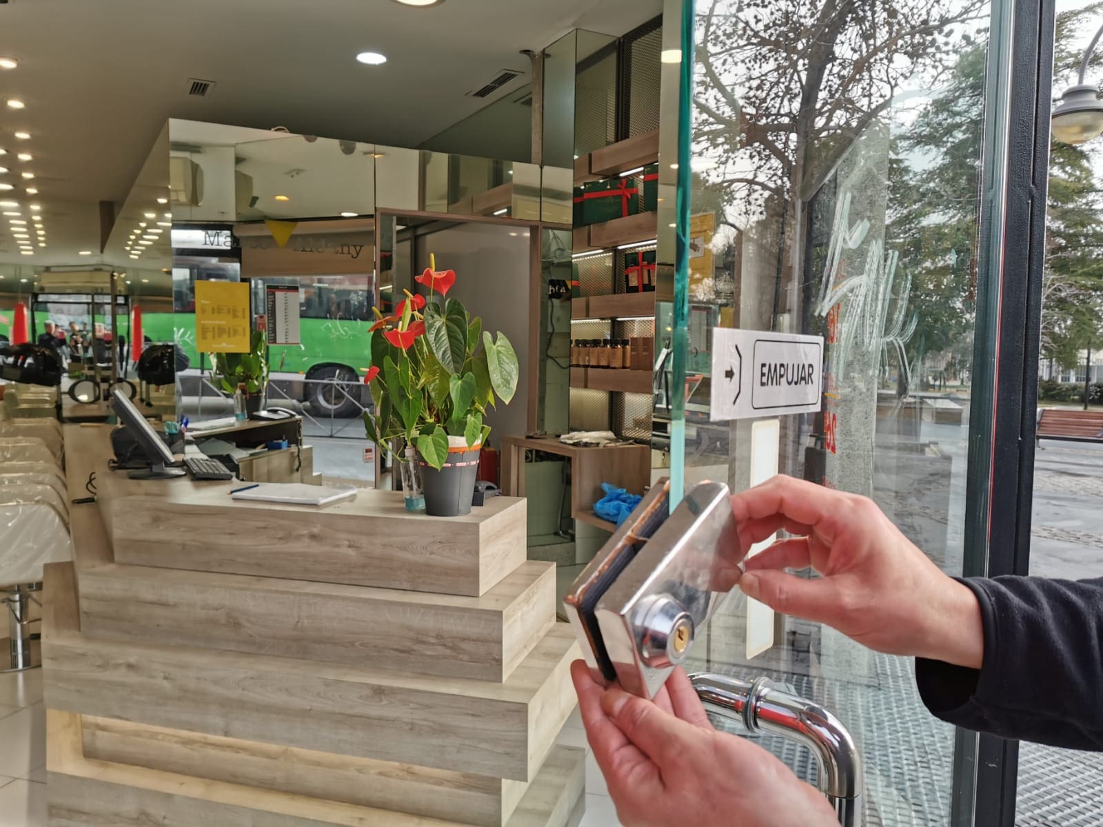 JULIA BACHILLER. La oleada de robos no cesa en Majadahonda, durante la mañana de este lunes 20 de febrero (2022) y después de los bares ahora le toca a las peluquerías. Hasta 3 han sido asaltadas en Majadahonda: «Marco Aldany» (prolongación de la Gran Vía), «Más que Bellas» y «Essencia» (ambas detrás del Ayuntamiento en la calle Mirasierra). Este medio de comunicación se personó en las tres y fue alertado por un vecino que se extrañó al ver numerosos restos de cristales esparcidos por la calle que el servicio de limpieza municipal estaba retirando. Desplazados al lugar indicado pudimos comprobar que se trataba de la peluquería Marco Aldany, situada en la prolongación de la Gran Vía (la calle en realidad se llama Ctra. de Boadilla del Monte 2, esquina a la calle Rosalía de Castro, frente al restaurante La Renta). Muy amablemente el encargado del local nos informó de lo sucedido. Los hechos tuvieron lugar a las 4:37 de la mañana, hora que han recogido las cámaras de seguridad instaladas en el local, en las cuales se puede apreciar como dos individuos fuerzan el cierre de la puerta de entrada y al no conseguir romperlo golpean la puerta de cristal. Del golpe esta se hace añicos y los delincuentes acceden al interior del local, dirigiéndose hacia el mostrador donde se encuentra la caja registradora. La precaución de mantener dicha caja abierta y sin dinero en su interior ha evitado las consecuencias económicas de este tipo de barbarie, por lo que después de verificar que su asalto no les proporcionaría un beneficio en metálico, abandonaron el lugar. Lamentablemente las consecuencias económicas y el miedo a que esto pueda volver a ocurrir corren a cargo del comerciante, que ve como su rutina diaria de trabajo se ve alterada por estos “amigos de lo ajeno” que tanto daño provocan.