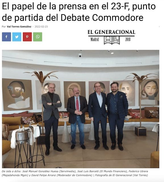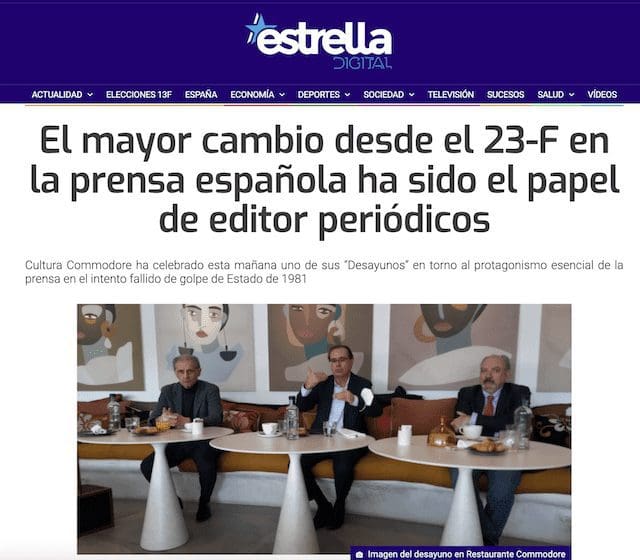 Gracias a @madridesnoticia por recoger el «Desayuno Commodore» sobre la prensa en la Transición y su rol esencial en el golpe fallido del 23-F, con @gonzalezhuesa de @Servimedia, José Luis Barceló de @elmundofinan y Federico Utrera de @MajadahondaM ☕?