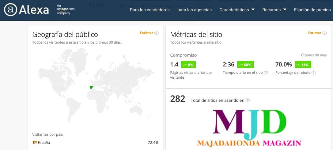 Concretamente Alexa, el medidor del Grupo Amazon, que mide a todas las webs del mundo y que puede consultarse de forma libre y gratuita, sirviendo de referencia en el sector publicitario y comercial dado su carácter independiente y ajeno a los intereses empresariales o políticos de cada país, otorga a MJD Magazin los siguientes datos: en España esta web majariega ocupa el nº 54.434, siendo el primer periódico local de la Comunidad de Madrid. Esto significa que a nivel global ocupa el puesto 1.326.655. Todas las webs que se acercan al ranking de 1 millón son las más visitadas de cada país. Por ello queremos compartir con todos este gran día con el que festejamos este nuevo éxito editorial de todo el amplio equipo de redactores y colaboradores que, con sus artículos y comentarios, compartiendo y reaccionando a nuestras ya casi 9.000 noticias, forman parte de esta enorme comunidad plural que es MJD Magazin, de la que nos sentimos orgullosos porque nos prestigia. ¡Enhorabuena a todos por aportar su grano de arena y hacerla posible!.