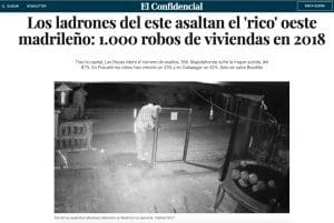 Y añade: «La tarta es muy golosa. Municipios con las rentas per cápita más altas de toda España, muchas urbanizaciones dispersas y buenas vías de comunicación para facilitar la huida. La ecuación perfecta. Y los ladrones lo tienen claro. El oeste madrileño, el ‘rico’ oeste de la región, sufrió en 2018 un importante aumento de los robos en viviendas. Así lo revela la última estadística de criminalidad hecha pública por el Ministerio del Interior, que analiza los municipios con más de 30.000 habitantes. Mientras los «robos con fuerza en domicilios» crecieron solo un 1,8% de media en toda la comunidad de Madrid (hubo 12.793, una media de 35 diarios), las localidades del oeste sufrieron el año pasado su particular vía crucis».