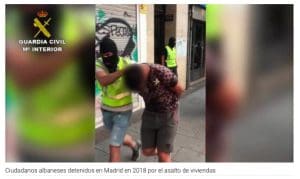 DETENCIONES: DELINCUENTES PROCEDENTES DEL ESTE DE EUROPA. El informe del periodista David Fernández señala que «la Guardia Civil, que tiene la competencia en materia de seguridad en la mayoría de estas ciudades, explica que este incremento se debe a que en 2018 varias bandas del este de Europa han actuado en la región. «Sobre todo albaneses, kosovares e incluso serbios», explica un portavoz de la Comandancia de Madrid. «Son grupos que vienen a Madrid a realizar campañas de asaltos y luego vuelven a sus países. Vienen a tiro fijo, porque ya conocen determinadas zonas de la región por robos anteriores o porque ya han actuado otras bandas con las que tienen conexiones».