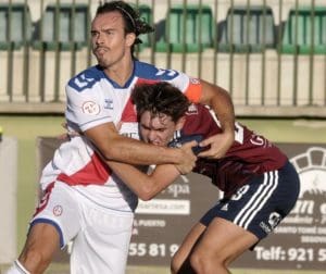 - Juanjo disputa de un balón entre ambos equipos en la segunda parte del partido