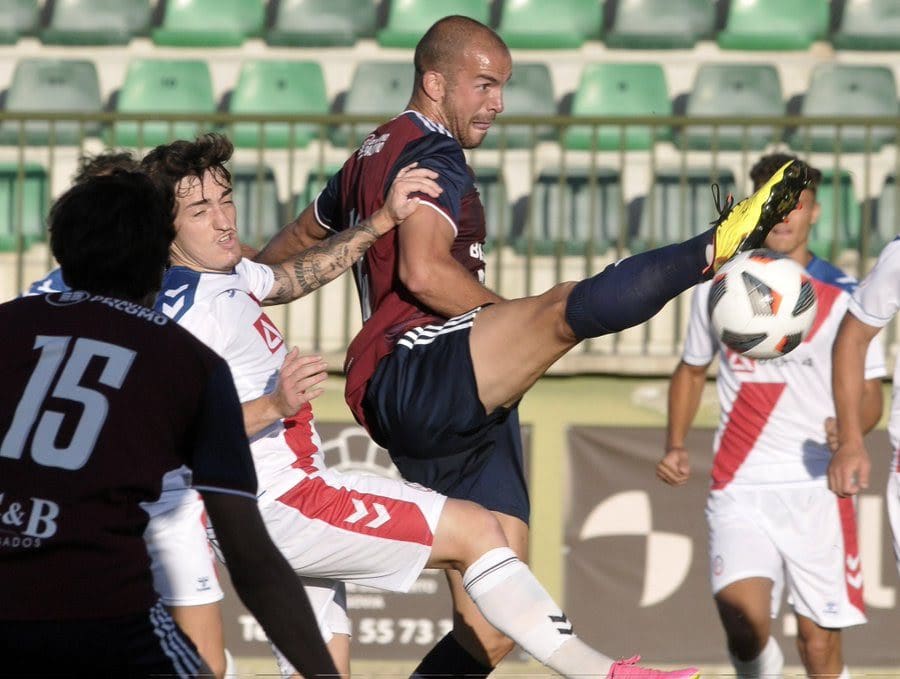 - Juanjo disputa de un balón entre ambos equipos en la segunda parte del partido