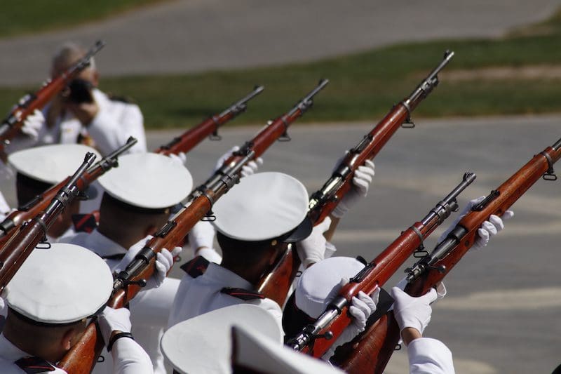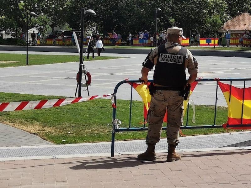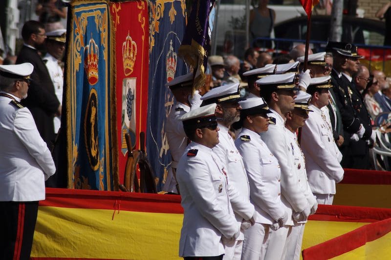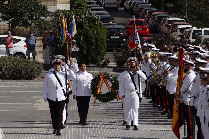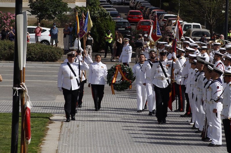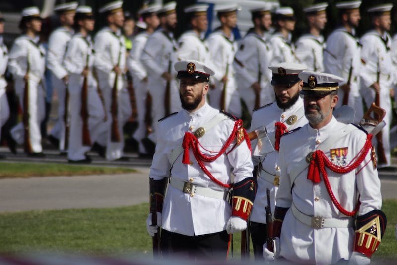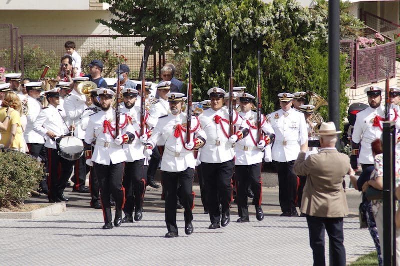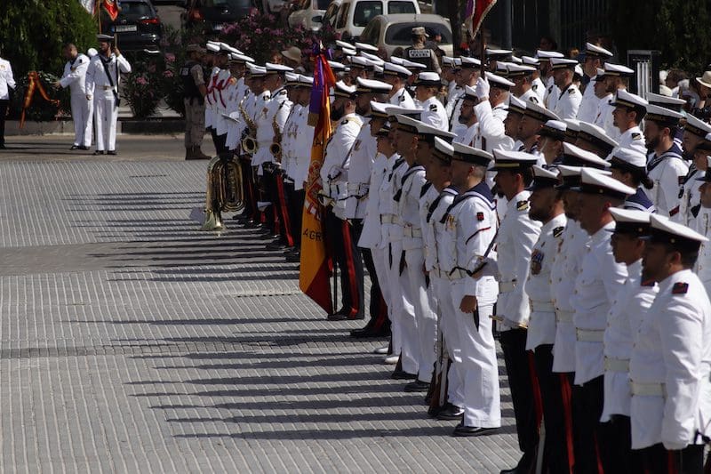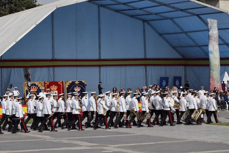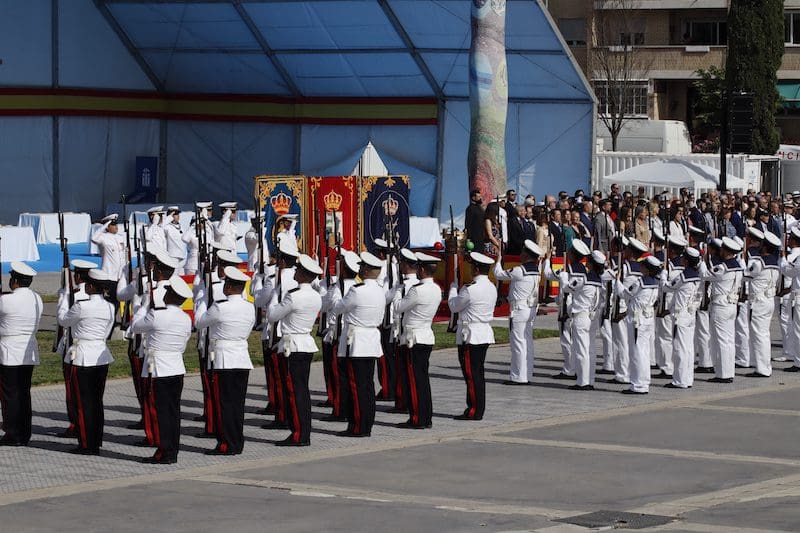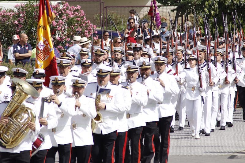 Y para finalizar recordó: “este juramento es una promesa que os hacéis a vosotros mismos, y que podéis desempeñar en cualquiera que sea vuestra labor en la sociedad, en el trabajo o con la familia, en el entorno público o privado, colaborando con los Cuerpos y Fuerzas de Seguridad del Estado cuando la situación lo requiera, apoyando a vuestros conciudadanos en situaciones de necesidad o siendo íntegros en vuestra conducta”. En sus últimas palabras reconoció: “Como militares os percibimos como camaradas. Suerte y valor para que seáis capaces de cumplir con vuestro compromiso”. Tras esta intervención llegó uno de los momentos más emotivos, el acto de los que dieron su vida por España. Ante un pequeño monolito el Almirante y el alcalde depositaron una corona de laurel portada por miembros de este cuerpo de la Armada mientras se escuchaba la conocida canción “La Muerte no es el Final”. Una descarga de fusilería al cielo puso el cierre a este original momento. El broche final fue el desfile en compañía de la magistral Unidad de Música, que concluyó con el merecido aplauso de todos los asistentes. Fotografías del acto (pinche sobre la imagen para aumentar su tamaño. Descarga gratuita):