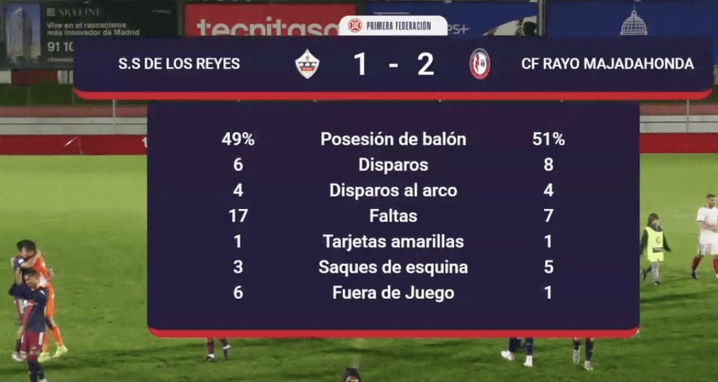Su segundo disparo lo convierte en pase a Jeisson en el área pequeña y cuando el majariego-peruano ve que no llega, estira el pie para prolongar hacia David Rodríguez. Este convierte en un festejo colectivo su salida al terreno de juego y transforma la jugada llegando desde atrás sorteando el fuera de juego. Fue un golpeo sutil que se transformó en un espléndido gol que supo a gloria. Ya apenas sufrió el Rayo Majadahonda, que manejó además los últimos 20 minutos con el poderío y la solvencia que este equipo, mezcla de veteranía y juventud, comienza el nuevo año queriendo luchar por cosas bonitas. Y para ello espera a un rival de su liga, como es el San Fernando de Cádiz, donde la afición le aguarda para reconocer y aplaudir con ganas esta inmensa victoria, tan esperada como justa. Rayo Majadahonda: Lucho (3), Pinillos (2), Casado (3), Félix Ofoli (3), Rahim (3); Mario (3), Sergio Llamas (2), Ozkoidi (2); Nando (2), Zozulia (1), Néstor (3). Segunda parte:Nabil (3), David Rodríguez (3), Jeisson (3), Iriondo (3) y Guille (2). Estadísticas y fotos en las siguientes imágenes: