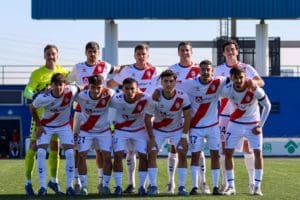 FICHA DEL ENCUENTRO. Getafe B (4-2-3-1): Tallés, García, Lhor, Trespalacios, Argüelles; Nico Conesa, Capdevila; Rafa Diz, Jeremy José, Rubi; Calçada. Entrenador: Gabi. Rayo Majadahonda (4-2-3-1): Adrián Fernández (3), Emi (3), Dani Ramos (3), Salama (3), Expósito (3); Diego Núñez (3) (Pascu, 72′) (2), Ato (3); Kandoussi (3, MVP) (Fer Pina, 78′) (2), Berzal (3) (Ebea, 72′) (3), Guti (3) (Hugo Esteban, 78′) (3); Simeone (3). Entrenador: Jesús Arribas (3). Goles: 1-0 (Rafa Diz, 50′), 1-1 (Bilal Kandoussi, 53′). Incidencias: el partido comenzó en Getafe con un emotivo minuto de silencio en memoria de Félix Gil, padre del director deportivo del Rayo Majadahonda, César Gil.