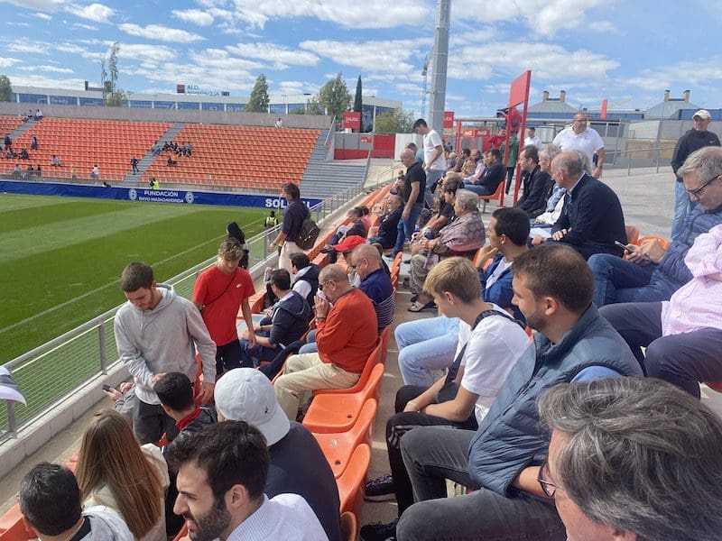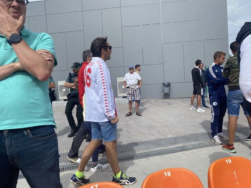 J. FEDERICO MTNEZ. Ni al más cruel de los guionistas de Hollywood se le hubiera ocurrido el guión de lo vivido este domingo 25 de septiembre (2022) en el Cerro del Espino. Y es que el partido entre el Rayo Majadahonda y la AD Ceuta parecía sacado de un film de Hitchcock: se adelantan los ceutíes (0-1) con un golazo por la escuadra de Pablo a saque directo de falta en el minuto 28. Y un minuto antes del descanso en el 44, Alvaro Portero roba el balón al guardameta visitante Montagud, pero su disparo con escaso ángulo se estrella en la madera, mientras que el posterior rechace cae a pies de un delantero majariego que también marra la acción con la que se va al descanso. En el minuto 64 se repite la jugada: nuevo palo de Ozkoidi que remata de cabeza y pega en el larguero, cayendo a pies de otro atacante rayista que también falla el remate a puerta vacía, aunque el árbitro lo anula por fuera de juego. Y ya el final del partido fue un thriller de terror macabro: en el minuto 88 tarjeta roja directa para el ceutí Reina por una patada sin balón a Jeisson, que sale del campo lesionado.