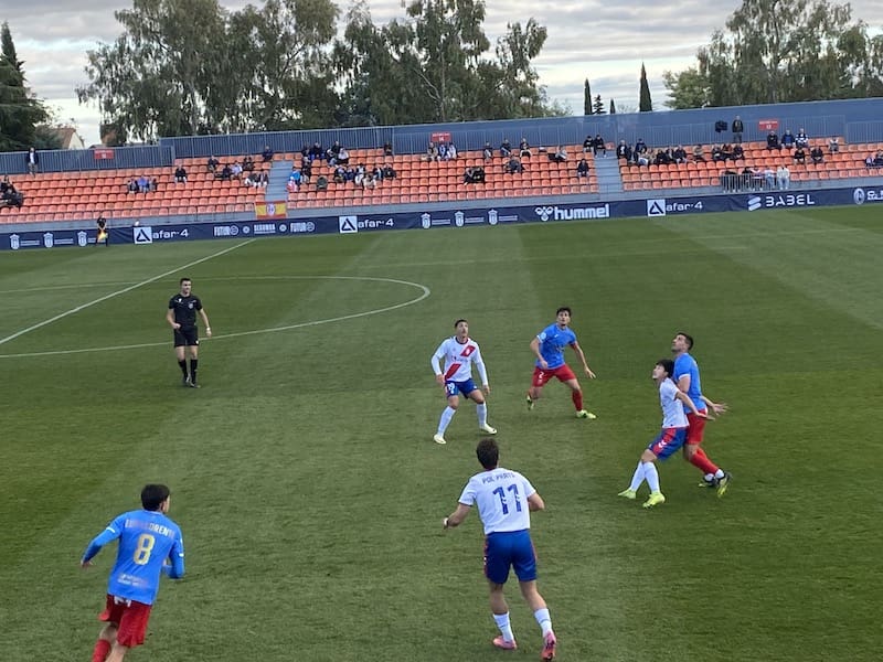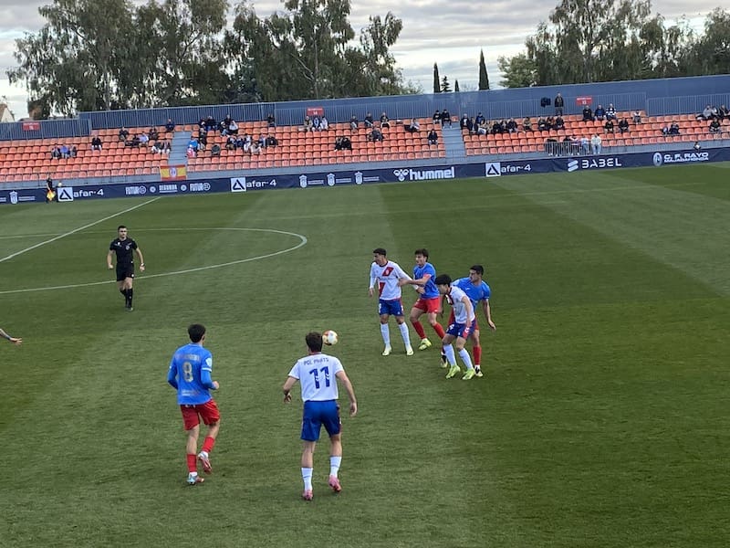 LAS ÚNICAS OCASIONES EN ESTA SEGUNDA PARTE LLEGARON DE NUEVO EN LOS PIES DEL CONJUNTO LOCAL, una de ellas tras un remate potente de Carmona que paró Cortes y finalmente una ocasión mas que clara de Javi Martin (jugador que volvía de lesión) en el 90´, en la que recibía el balón a la espalda de la defensa y tras un mano a mano con el portero, saldría victorioso el segundo tras una gran parada. No hubo tiempo para más y el arbitro decretó el final del partido en el minuto 94, certificando otra victoria más del Rayo Majadahonda, que sigue invicto en el Cerro del Espino. El Rayito seguirá siendo otra semana más líder en solitario, con 31 puntos y 5 puntos por encima del segundo, a la espera de que este domingo jueguen sus inmediatos perseguidores Sanse, Coria y Getafe. El próximo partido (domingo 21 de diciembre a las 12.15 horas) será un bonito «derbi de Rayos», frente al filial vallecano, que no ha podido disputar su partido,este fin de semana frente al Tenerife B por el temporal que sufre la isla canaria. El partido se disputará en el estadio Virgen de la Torre, siendo la entrada gratuita y por ello se espera un desplazamiento masivo de la afición rayista parecido al que realizó al estadio El Val de Alcalá de Henares en su penúltimo encuentro del 2025 y a la tampoco nada despreciable presencia en el barrio de Usera ante el Moscardó.