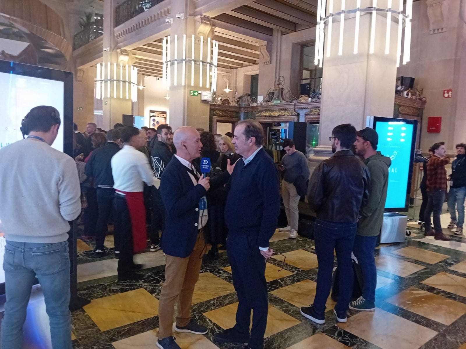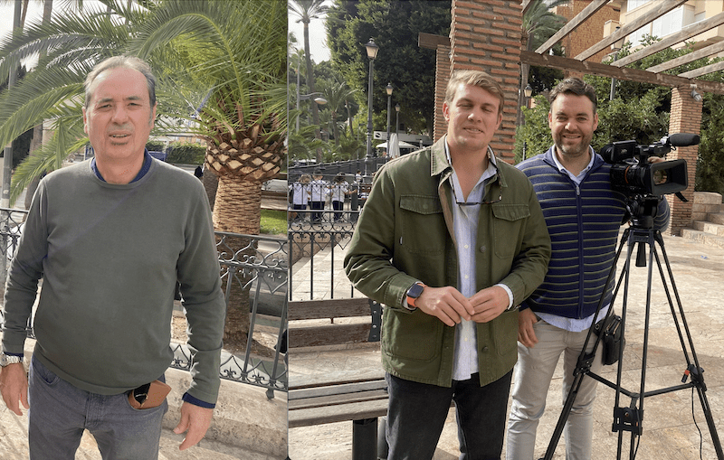 Federico Utrera durante la entrevista con el periodista Antonio Lasso y el cámara José Luis Lara (Tele 5)