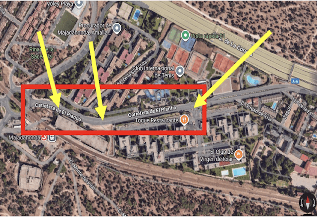 Par 1: Paso de peatones sobreelevado 1 Descripción de la ubicación de los 2 reductores: Paso de peatones cercano a la parada de autobús “Carretera del Plantío-Estación de Majadahonda”.