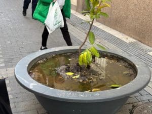 Ignacio M., vecino de Majadahonda: «En esta foto se ve una planta nadando en agua porque tiene el drenaje obstruido y la pobre tiene los días contados. Todo ello en los mismos aledaños de la Gran Vía. ¡Una pena!»