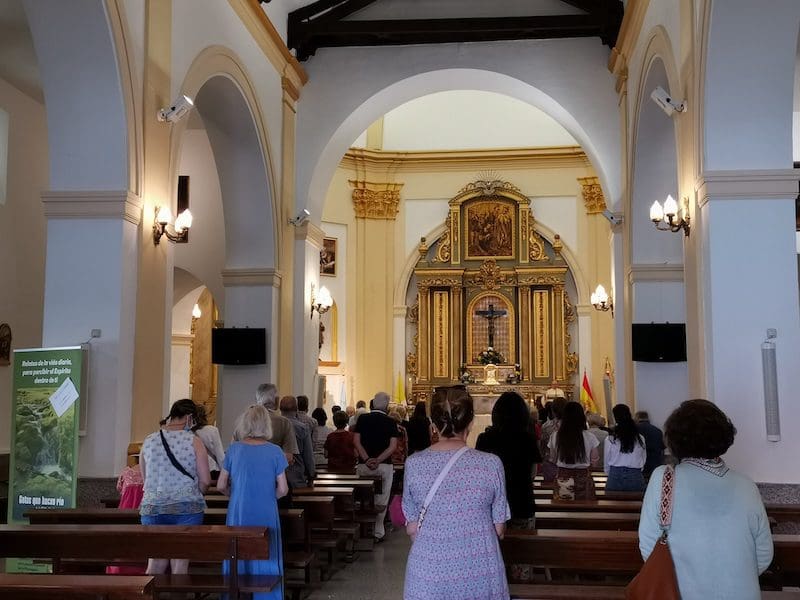JULIA BACHILLER. La Semana del Mayor 2022 de Majadahonda dio comienzo este lunes 23 de mayo y durante una semana rinde homenaje a nuestros mayores a través de numerosos actos y actividades organizados desde la Concejalía de Bienestar Social y Mayores que dirige María José Montón (PP). Como apertura de esta semana, en la Parroquia de Santa Catalina se celebró una Eucaristía de Acción de Gracias a las 12:00 horas, que contó con la presencia de la edil mencionada, así como también la concejal de Cultura Nuria Wilde (PP) y junto a ellas Concepción Ruiz, presidenta del Club de Mayores Reina Sofía. Finalizada la misa, los actos se trasladaron al Centro de Mayores Reina Sofía, donde la concejal María José Montón dirigió unas palabras a los presentes y disculpó la ausencia del alcalde: “un imprevisto de última hora le ha impedido acompañarnos en esta mañana”. Aprovechó la ocasión para anunciar la próxima reapertura de la cafetería del centro y hacer mención a la ampliación de las instalaciones prometida por el alcalde y que en su día provocó una insólita manifestación de los propios mayores ante el consistorio, algo que no había ocurrido antes en el municipio: «No me olvido de la ampliación del centro de mayores que el alcalde os anunció, que no avanza como todos quisiéramos, pero puedo garantizaron que sí que lo van a hacer».