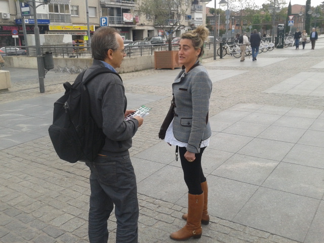 La candidata nº 2 de Somos Majadahonda, Irene Salcedo, en las calles majariegas repartiendo su programa