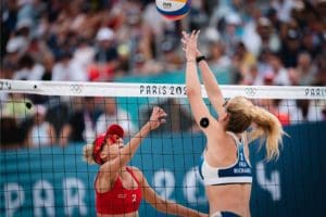FEDERACIÓN. «Gran encuentro de Moreno y Álvarez para doblegar a la pareja francesa. Las españolas Tania Moreno y Daniela Álvarez sumaron su primera victoria en los Juegos Olímpicos de París al derrotar a las anfitrionas Placette y Richard con claridad. La madrileña y la asturiana se mostraron infalibles en su juego, con una gran presión en saque con cuatro aces en el primer set, y el acierto en remate para cerrar el choque por la vía rápida (12-21/15-21). Las subcampeonas continentales cerrarán la fase de grupos el sábado a las 12 horas ante las germanas Ludwig y Lippmann para buscar un lugar en las eliminatorias. Tania Moreno y Daniela Álvarez mostraron un juego sólido y confidente con sus acciones. Los remates de la asturiana y los errores galos situaron el marcador en clara ventaja para las españolas (2-7) en el primer tiempo muerto solicitado por Placette y Richard. La diferencia no frenó el juego español, que mantuvo su presión con el saque (cuatro puntos directos en el primer parcial) y la presencia de Álvarez en la red. La distancia crecía de forma exponencial, tras varias acciones consecutivas en remate de Moreno para un clarificador 6-16.