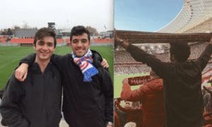 Andrés Basurto, socio del Rayo Majadahonda, con su hermano en el Cerro. A la derecha en San Mamés con el At. Bilbao
