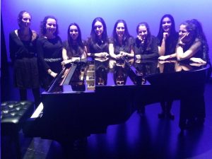 Las alumnas del conservatorio de música de Majadahonda, posando antes de comenzar su concierto solidario